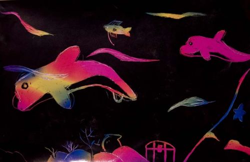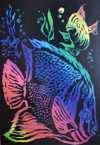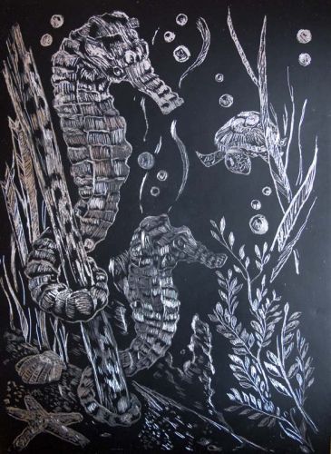 For Christmas David and I got Scratch Art. Because of its details, it was more of a challenge than any other scratch art we have ever tried to do. That was the sea horse and the fish.