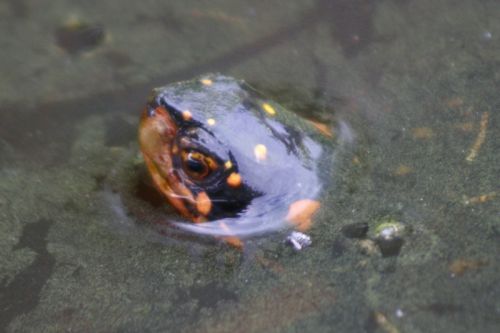 {huntly} A Spotted Turtle peeps out from the murky wateAs I look back, I am surprised how amazingly close the animals came for picture-taking. We had received what we asked for with our lips and found what we searched for with our eyes, but I am convinced that God also “opened the shutter” for what I had “knocked” for with the camera.