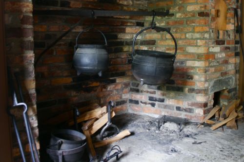 Then we toured the kitchen. Without electricity or refrigeration, fixing meals was a continuous and laborious job. Fire was used for heat and light so it was a very dangerous job as well. In fact, death by fire was the number one cause of death in women in those days. Also, because there was no running water, sanitation was difficult, if not impossible. People usually only took two baths a year.