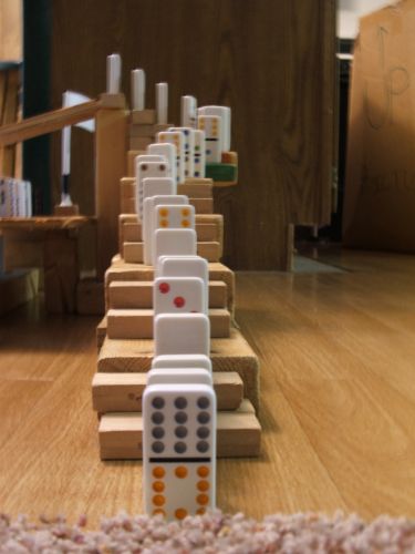 Have you ever made chain reactions with dominoes? I have had a great time