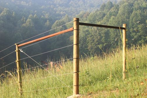 Our wonderful neighbor and friend Randy Plaugher generously gave us the service of his tractor and post driver, as well as his precious time, to drive the rest of the fence posts. He even showed me an excellent method of bracing the end posts and corner posts to prevent the tight wires from pulling them in.
