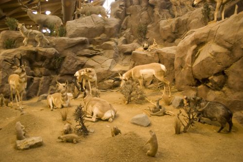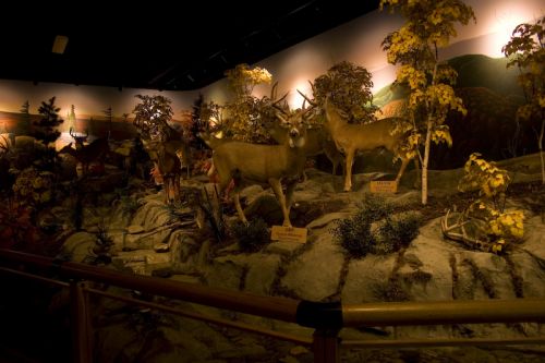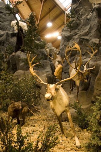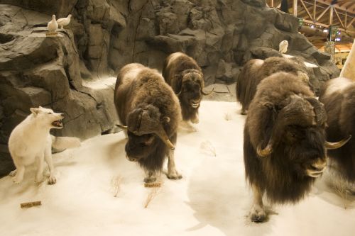 It was a long drive but defiantly worth it. They had a really colossal mountain in the middle of the building covered in all sorts of animals. They had a lynx chasing a rabbit, mountain sheep jumping a real running stream and waterfall, polar bear standing up, a heard of muskox charging down the mountain and being attacked by timber wolves, and a big herd of elk which were all life size. And lots of other little animals all over the mountain.