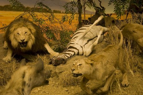 In another section of prairie and desert there was a huge life size elephant. And they had a leopard jumping into a tree trying to catch a bird that was flying away, and a heard of lions and hyenas fighting. They also had a big crocodile that had a bird in it’s mouth.