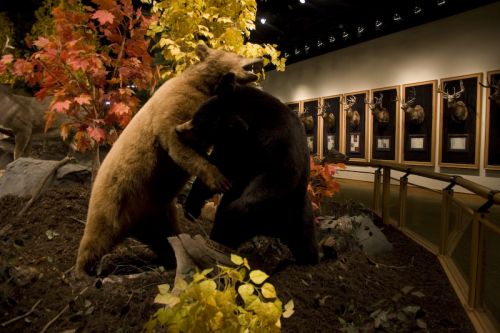 We also got to go into Whitetail World which was really awesome. There must have been over a hundred prize wining white tail deer jumping over fences or just grazing or running away from predators. On the side of the path there was a fake person that would tell stories if you pushed a button. In the Whitetail World they also had a brown bear and black bear fighting right next to the path; it was scary looking.