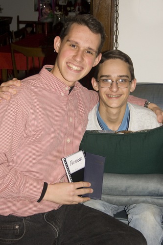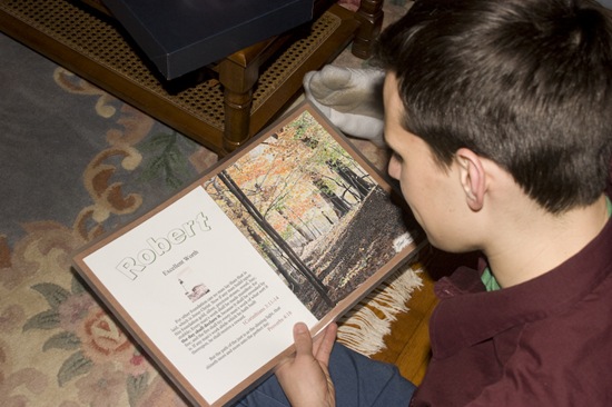 Daniel gave me a handy, personalized weekly planner and notebook. Everyone but Robert had a personalized table place-mat, so Michael used his skills to complete the set. Jonathan’s amazing custom-made beehive-tool holder for Michael will be very useful.