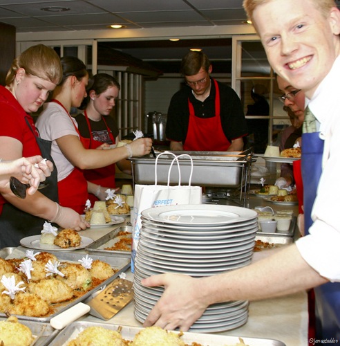 Fresh roses were used in most of the decorations My responsibilities for this very special Valentines Banquet were categorized into three major sections: I was to first help in the studio, then take pictures of how the food was prepared and lastly take more pictures of what all transpired during the actual banquet.