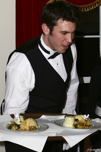 The essence of the candle-light banquet is impossible to capture with a camera. But it was fun taking pictures of the dining room and servers: