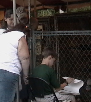 in West Virginia. A group from Florida who raises zoo animals travels around to educate people about animals. It was a Safari on wheels! Esther, David and I decided to go down and spend an evening seeing it. It was small, of course, but it had some rare animals that were fun to see. My favorite part was when they let us take