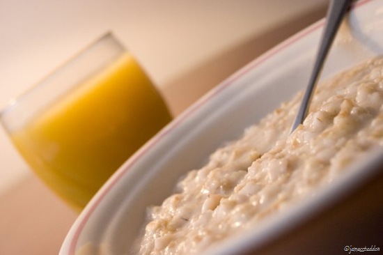 Simplicity was the goal here. I wanted to create a picture of a bowl of oatmeal like you would find on a breakfast menu of some classy restaurant. The lighting helps to achieve this end.