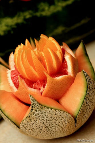 Looks like a *ton* of work was put into the whole event. It’s amazing how that cantaloupe was carved. The bow tie on the bear was a great idea 🙂