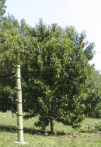 only once (a large crop in ’08) and has had severe difficulty with brown rot and bacterial spot to the point of defoliating the branches, especially on the north side of the tree. Its fruit was badly affected by bacterial spot, and most of the fruits were significantly smaller. The third “peach” planted that year was a