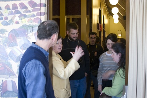 The Mennonite Information Center where the Tabernacle Tour was givenBut a highlight of the trip for me was Saturday, when our Aunt and Uncle took us on a nearby tour of a replica of the Old Testament Tabernacle. It was much simpler than I thought! Unfortunately photography Our cousins live just outside of Amish Country.was not allowed inside, but we all now have a clear mental picture of the brasen altar, the golden candlestick, the Ark of the Covenant, the veil which set apart the Holy of Holies, and the overall size of the Tabernacle and its The door into the Tabernaclefurnishings. We were blessed with an excellent tour guide who made learning about the significance of each item in the Tabernacle a fun experience, and who even took the time to answer our Life-size figures performing their duties in the outer courtpersonal questions. The tour totally transformed my perspective of the Tabernacle! Now I am looking forward to reading the Old Testament, because I have the bigger picture and will be able to appreciate better the precise instructions Our guide explaining the intricacies of the TabernacleGod gave for building, using, and maintaining His holy habitation, as well as the symbolism it holds for our bodies as tabernacles of the Holy Spirit.